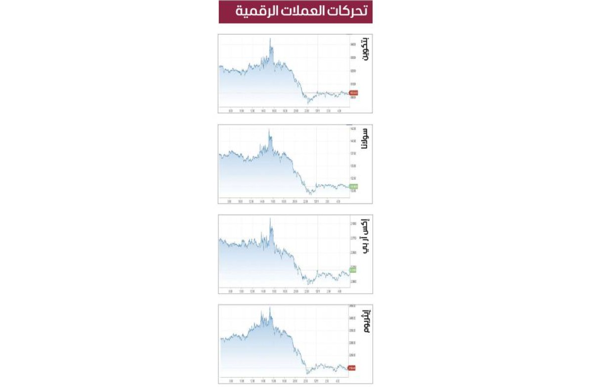 وانخفضت «إيثريوم» 5.8% إلى 3191.31 دولاراً، وكذلك هبط سعر كل من «ريبل» بنسبة 1.65% عند 2.013 دولار، و«دوج كوين» 6.83% لتسجل 13.77 سنتاً.