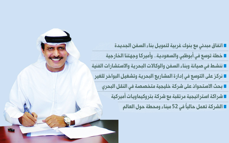 في ظل المتغيرات تقدم أحد المساهمين الكبار بطلب شراء الحصة المتبقية من زيادة رأس المال الأخيرة، وتقوم الشركة مع الجهات المختصة بدراسة هذا الطلب لإصدار صكوك بقيمة 100 مليون درهم. ونجري حالياً عدة محادثات مع بنوك أوروبية وأميركية وبنوك الصادرات المتخصصة في كوريا والصين ووصلنا لتفاهمات مبدئية بتوفير 85% من إجمالي التمويلات التي تبلغ نحو 280 مليون دولار والمطلوبة لبناء السفن الست الجديدة.