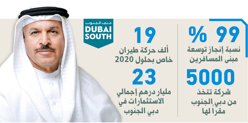 كشف خليفة الزفين، الرئيس التنفيذي لمؤسسة مدينة دبي للطيران ودبي الجنوب، أن دبي الجنوب أكملت كل الاستعدادات لاستضافة إكسبو 2020 سواء فيما يتعلق بمرافق الطيران أو بالمرافق الفندقية التي أصبحت جاهزة لاستقبال أعداد مضاعفة من المسافرين والزوار.