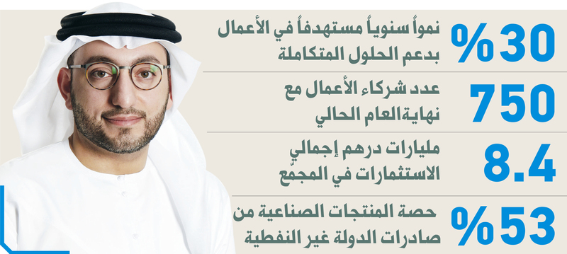 وقال في حوار مع «البيان الاقتصادي»، إن حجم الاستثمارات في المجمع منذ التأسيس في عام 2004 وحتى نهاية العام الماضي بلغت 4.7 مليارات درهم في البنية التحتية، فيما يبلغ إجمالي حجم الاستثمارات في المجمّع تصل إلى 8.4 مليارات درهم.