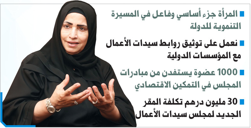 وأشارت إلى الانتهاء من المبنى الجديد للمجلس وقالت إنه في منتصف العام الجاري سوف يتم الانتقال إليه بمنطقة الجرف وقد تكلف 30 مليون درهم ومكون من 3 طوابق، وسوف يأخذ الطابع التراثي بحيث يكون معلماً جاذباً للمستثمرين ورواد المشروع.