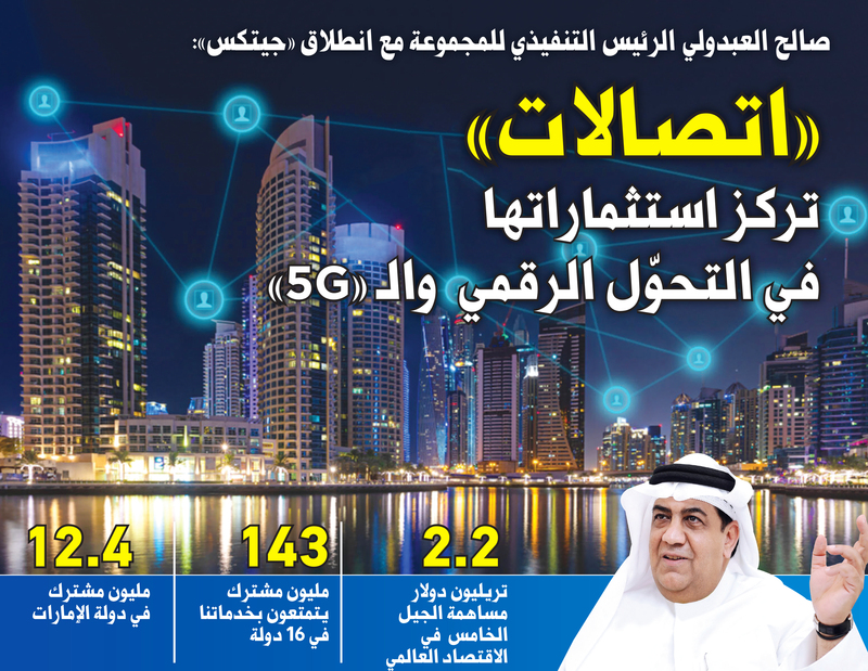 وتقوم «اتصالات» بهذا الصدد على تعزيز التعاون مع الشركاء والمزودين العالميين لخلق حلول وقيمة مضافة على المدى البعيد لمختلف القطاعات الحيوية، سعياً لتمهيد الطريق لمستقبل رقمي أكثر ذكاءً وإنتاجية، ولإحداث تغيرات جذرية في المنظومة الاقتصادية، بالإضافة لإتاحة الفرص لوسائل جديدة ومبتكرة من التعاون مع قطاعي الأعمال والأفراد، لا سيما وأن توقعات الاتحاد الدولي للاتصالات المتحركة تشير إلى أن مساهمة شبكة الجيل الخامس «5G» في الاقتصاد العالمي ستصل في السنوات المقبلة إلى نحو 2.2 تريليون دولار.
