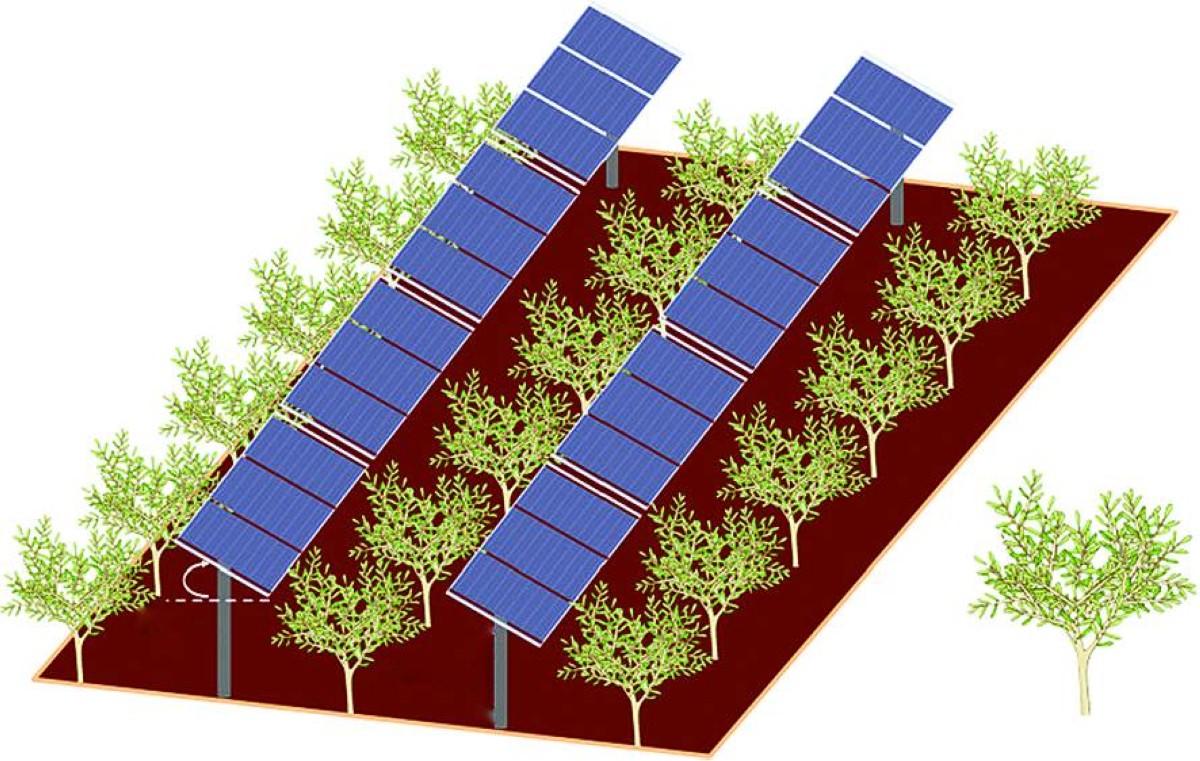 اختبر باحثون دمج الطاقة الشمسية مع الزراعة (الزيتون). وكشفت النتائج عن سيناريو مربح للجانبين، حيث يستفيد كل من توليد الطاقة وإنتاج المحاصيل، وتتجاوز الإنتاجية ما يمكن أن يحققه كل منهما على حدة، وأن أشجار الزيتون تستفيد من ظل المجمعات الشمسية، وفي الوقت نفسه، يعمل التأثير المبرد لتبخر النباتات على تعزيز أداء الألواح الشمسية.