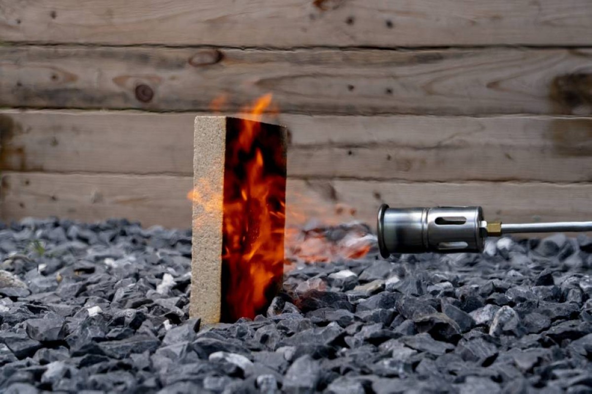 واختُبرت الألواح بالتعاون مع جامعة بوليتكنيك تورينو باستخدام جهاز cone calorimeter، وأظهرت النتائج أنها استغرقت أكثر من ثلاث مرات وقت الإشعال مقارنة بالخشب العادي، كما تشكل عند تعرضها للهب طبقة واقية من الكربون والمعادن تبطئ الاحتراق بشكل فعال، ما يمنح المبنى حماية ذاتية إضافية ضد الحرائق.