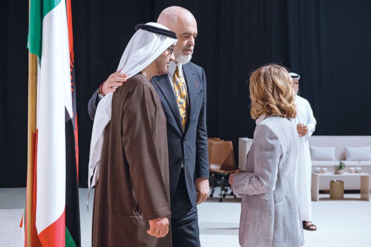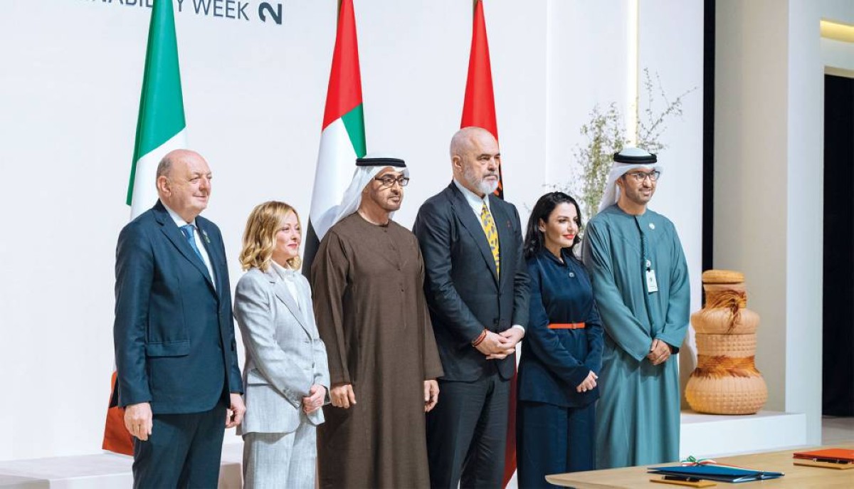 بحضور صاحب السمو الشيخ محمد بن زايد آل نهيان، رئيس الدولة، حفظه الله، ومعالي جورجيا ميلوني، رئيسة وزراء إيطاليا، ومعالي إيدي راما، رئيس وزراء جمهورية ألبانيا، وقعت دولة الإمارات وإيطاليا وألبانيا اتفاقية شراكة إطارية ثلاثية للتعاون في مشاريع الطاقة النظيفة.