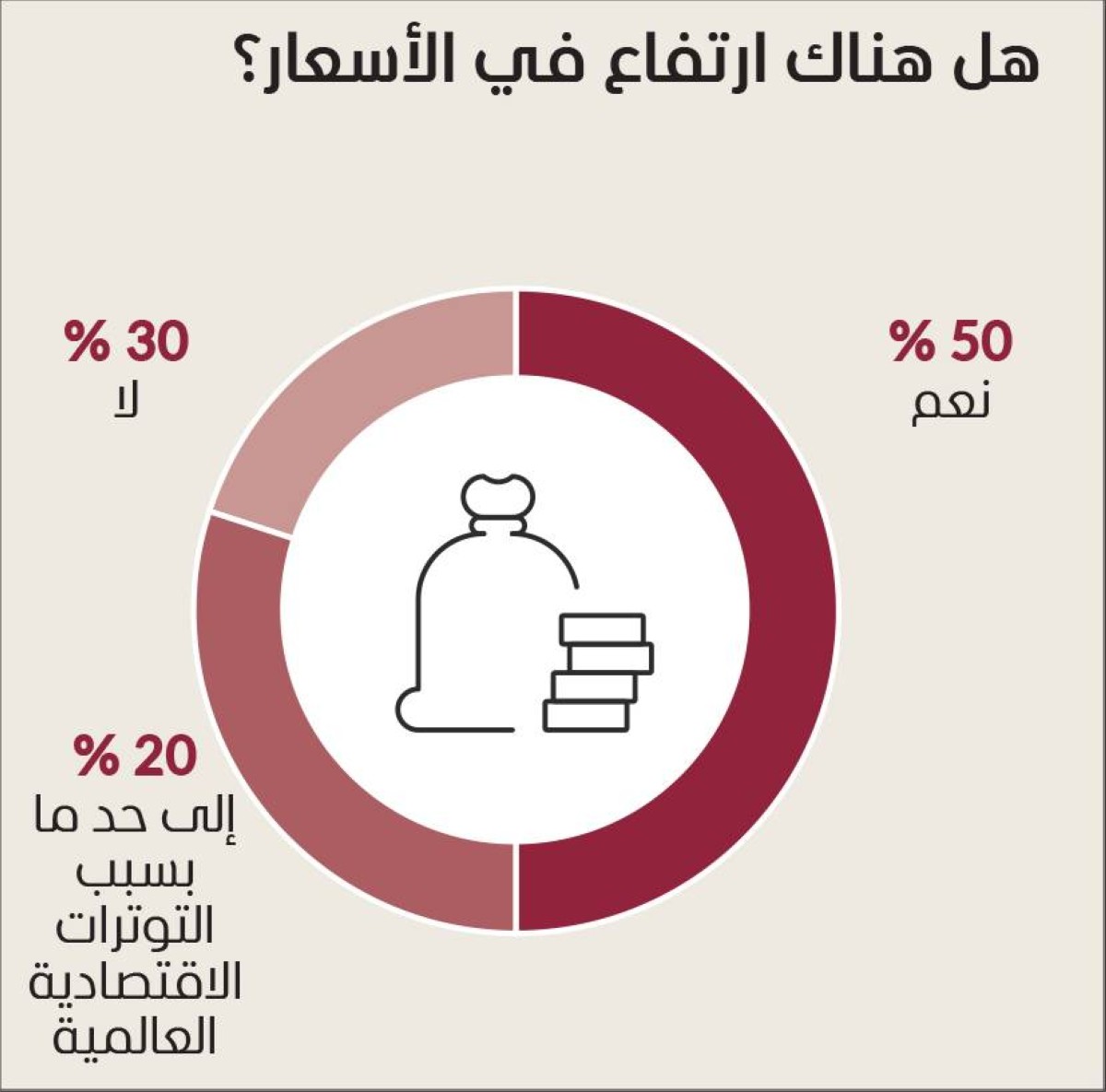 وفيما يخص ارتفاع أسعار السيارات، أقر 50 بوجود ارتفاع في الأسعار ولكن له أسبابه، فيما نفى 30% وجود ارتفاع في الأسعار، أما 20% فقد رأوا أن الارتفاع في الأسعار عائد إلى التوترات الاقتصادية العالمية.