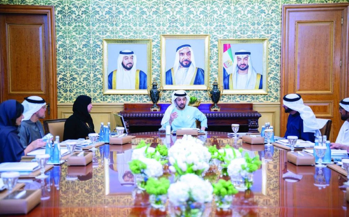 حمدان بن زايد خلال ترؤسه الاجتماع بحضور آمنة الضحاك والمسؤولين