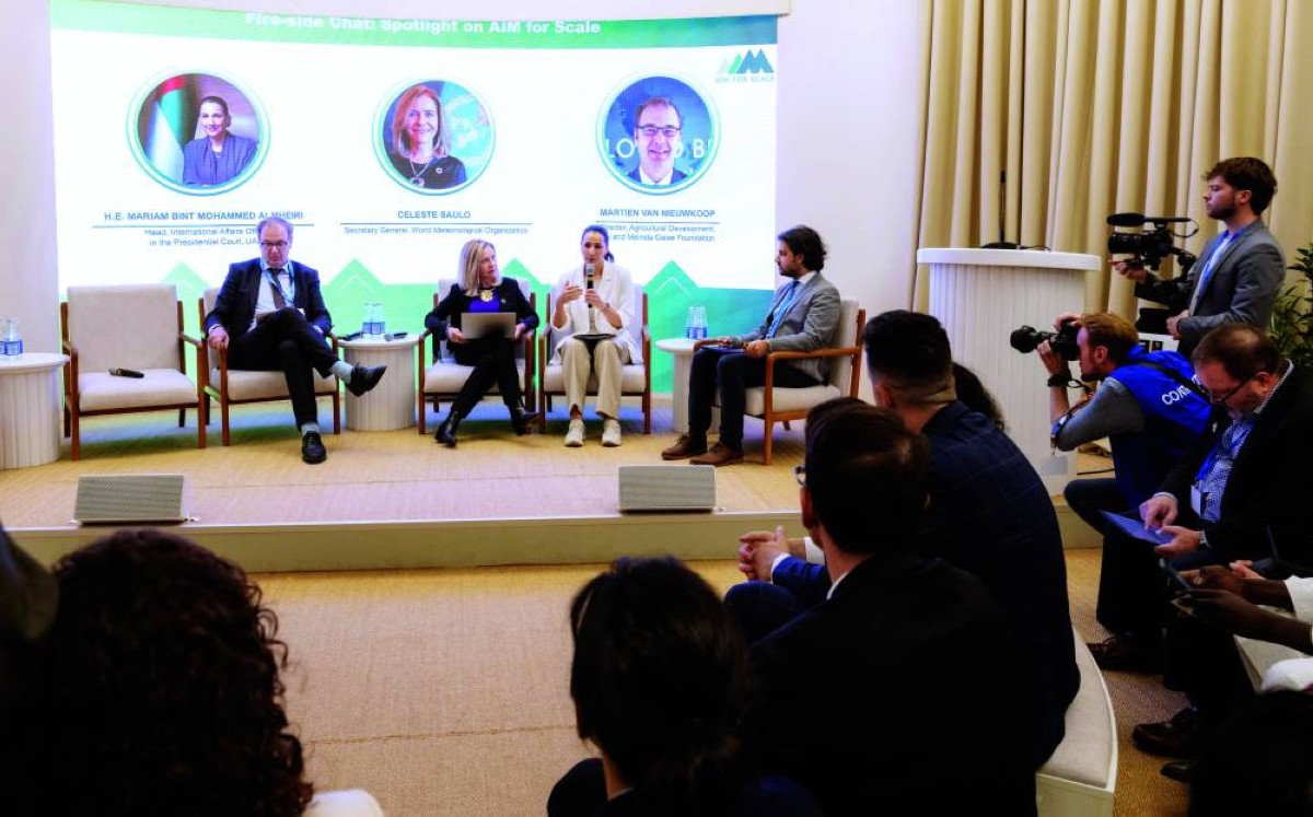 وفي جلسة مبادرة الابتكار الزراعي للمناخ ضمن شراكة الإمارات ومؤسسة غيتس، شاركت معالي مريم بنت محمد المهيري في حلقة نقاشية ضمت ممثلين عن مؤسسة غيتس، وتناولت كيفية تزويد المزارعين بأدوات أساسية لاتخاذ قرارات بشأن مواعيد الحصاد وزراعة البذور والتكيف مع حالات الطقس المتقلبة.
