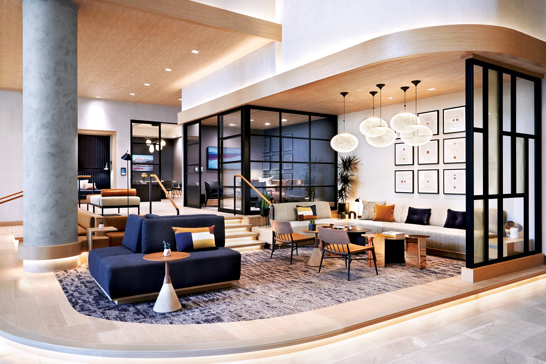 ويبرز في التصميم الجديد ملامح متميزة مثل الركن المجتمعي، وهو عبارة عن مساحة عمل جذابة تتوسط ردهة جميع الفنادق لتتيح للضيوف العمل وتناول الأطعمة والمشروبات وتجديد طاقتهم. ويعكس هذا الركن مبادئ العلامة التي تركز على استخدام تصاميم أنيقة وعملية في الوقت ذاته، حيث تم تجهيز الطاولات بوسائل راحة مصممة خصيصاً لتعزيز إنتاجية الضيوف.