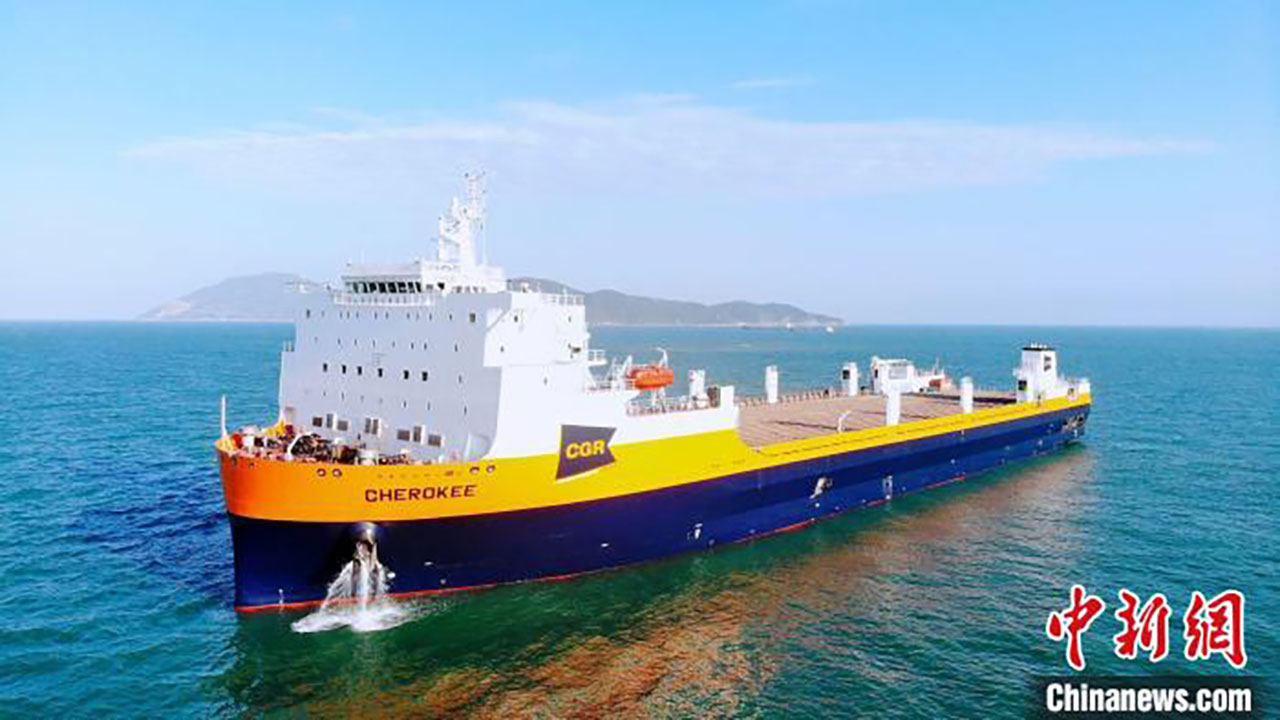 تم تسليم أكبر سفينة مخصصة لنقل القطارات في العالم "شيروكي" في الثامن الشهر الماضي في قوانغتشو الصينية، والتي تم تصميمها وبناؤها بشكل مستقل من قبل شركة خوانغبو ونتشونغ التابعة لشركة بناء السفن الصينية، إلى مشتر أمريكي خلال مؤتمر فيديو عقد في اليوم نفسه.