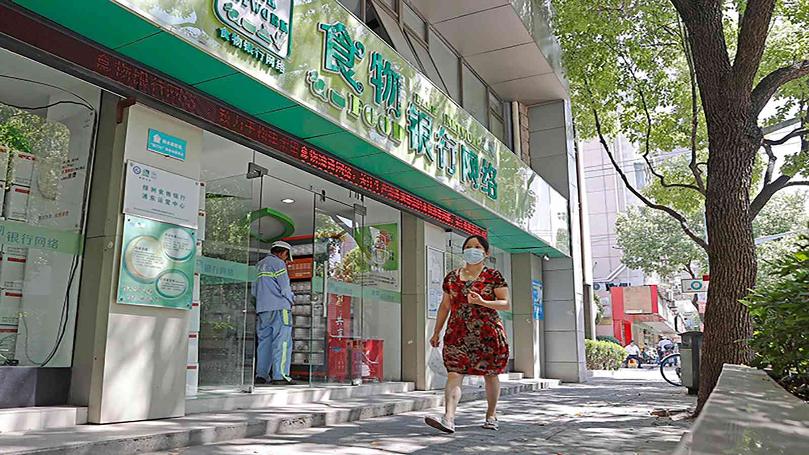 ويشهد بنك الواحة الخضراء للطعام الواقع في شارع ايشان بمنطقة بودونغ الجديدة بشنغهاي يوميا صفوفا مزدحمة في كل صباح للحصول على الطعام.