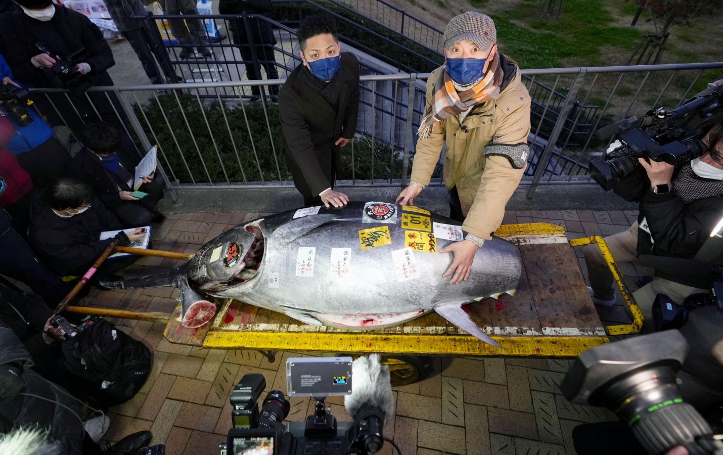 ارتفع سعر التونة الأكثر شعبية في المزاد الأول 2.1 مرة عن العام السابق، لكنه أقل بكثير من الرقم القياسي الذي تجاوز 300 مليون ين في المزاد الأول للعام 2019. تجلب تونة أوما أسعارًا عالية كل عام.