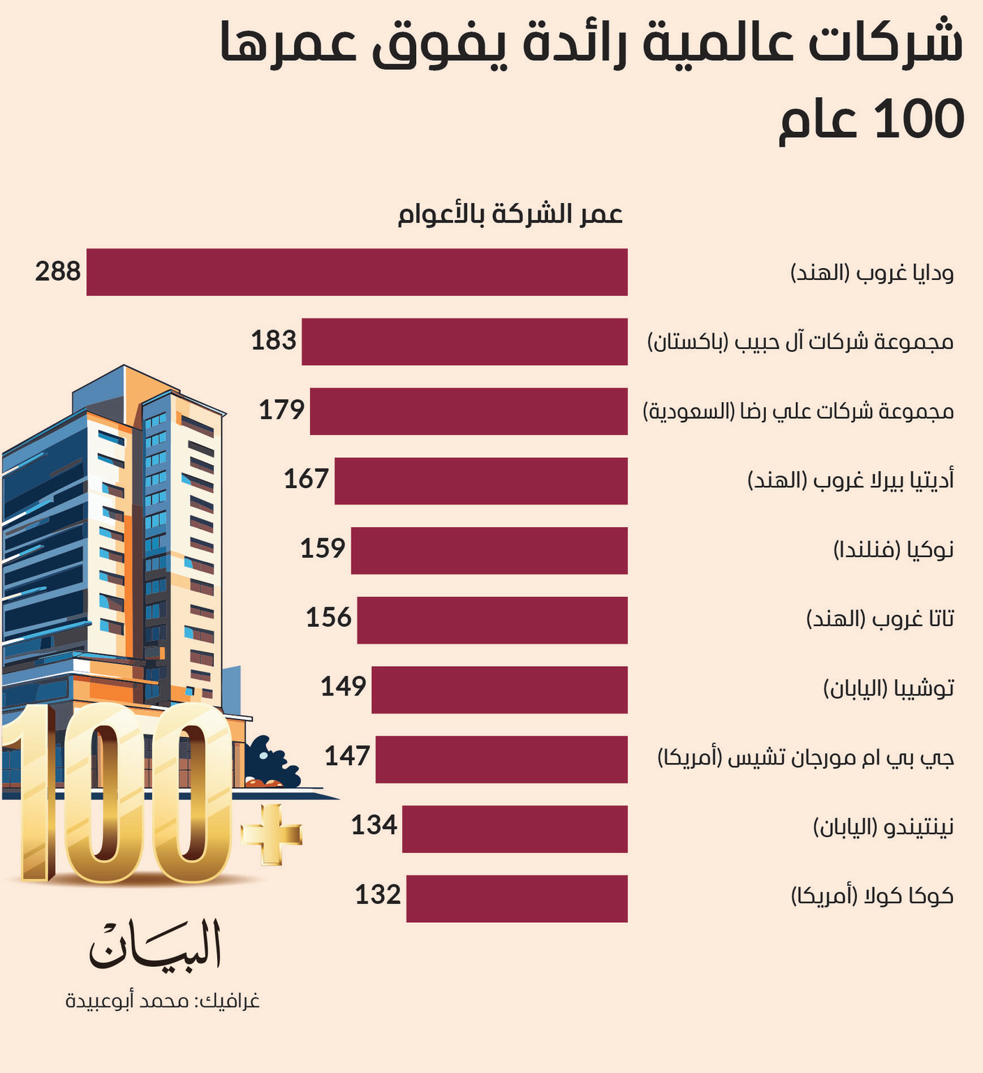 شركات عالمية رائدة يفوق عمرها 100 عام