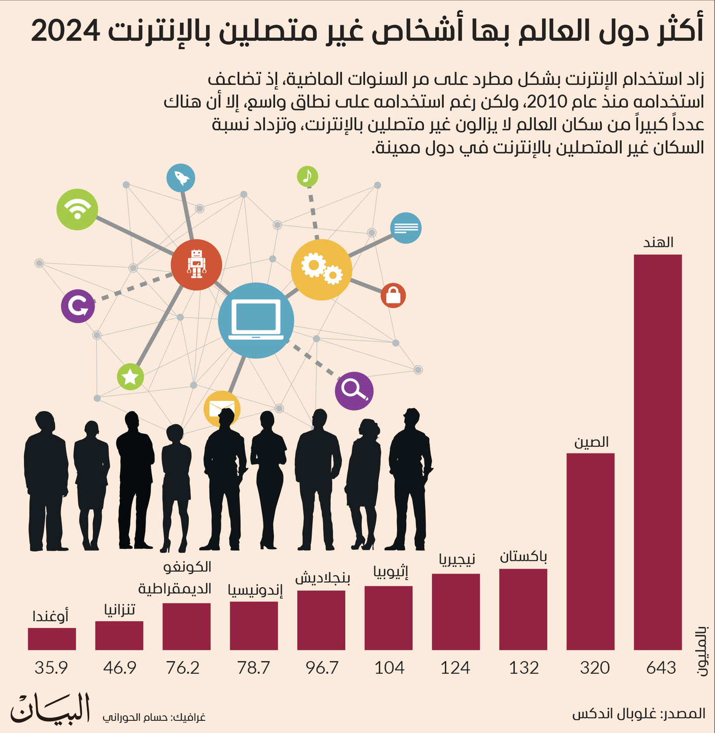 أكثر دول العالم بها أشخاص غير متصلين بالإنترنت 2024