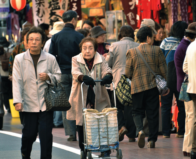 اقتصاد اليابان يواجه أزمة مواليد (أ ف ب)مسنون يتجولون في شارع تجاري في وسط مدينة طوكيو حيث حذر تقرير حكومي من أن اليابان تعاني بشكل كبير من انخفاض أعداد المواليد الأمر الذي يلقي بظلال قاتمة على المستقبل الاقتصادي لإمبراطورة الصناعة العالمية.