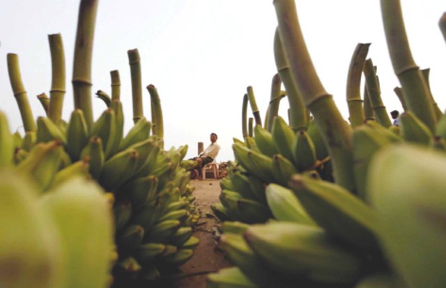 موسم الموز في ميانمار (رويترزبائع يجلس إلى جوار كميات من الموز الأخضر في سوق للجملة على ضفاف نهر يانجون في ميانمار، حيث موسم جني الموز من دلتا ايراوادي، والذي يؤدي إلى انتعاش الأوضاع المالية للمزارعين وتجار الموز على حد سواء. )