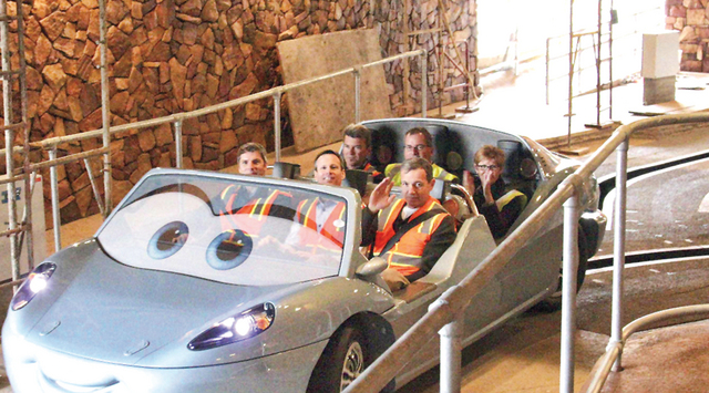 ديزني تدشن حديقة ترفيهية جديدة (رويترزرئيس شركة والت ديزني وعدد من المدراء التنفيذيين، يستقلون سيارة ترفيهية خاصة بديزني، خلال تدشين حديقة جديدة في إطار التوسعات التي تجريها الشركة حالياً.