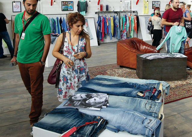 مطار ألماني مهجور يستضيف أزياء الشوارع (غيتي)زوار يعاينون أقمشة الدينيم في معرض (بريد اند بوتر) للأزياء الأكبر من نوعه في العالم، والذي يقام سنويا في قاعات مطار "تمبلهوف" السابق والمهجور في برلين ويعرف باسم معرض أزياء الشوارع.