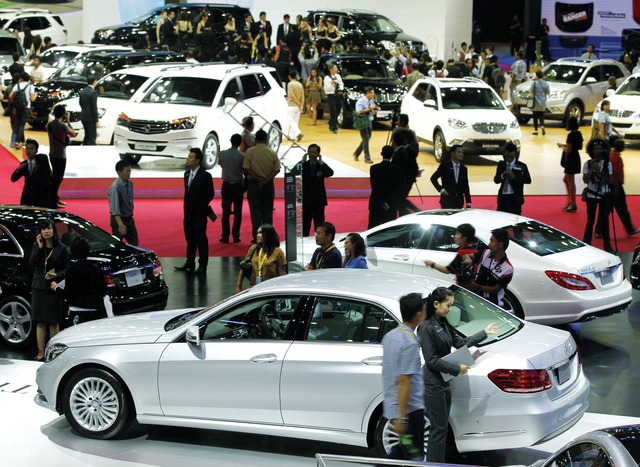 الأمل في صناعة السيارات يتجدد إي بي أيهزوار يستعرضون موديلات جديدة من السيارات خلال معرض بانكوك الدولي للسيارات الذي انطلق أمس. وقال خبراء إن المعرض شهد إقبالاً كبيراً من الشركات والجمهور مما يعني تجدد الأمل في صناعة السيارات التي أصابها شيء من التراجع خلال الفترة الماضية.