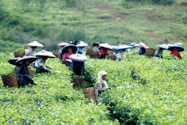حصاد الشاي الأسود إي بي أيهعاملات ينهمكن في حصاد أوراق الشاي في إحدى المزارع في منطقة بوغور الإندونيسية. وانخفض إنتاج البلاد من الشاي إلى 4.3 ملايين كيلوغرام، فيما لا تزال كينيا وسريلانكا تقفان على صدارة الدول المنتجة للشاي الأسود.