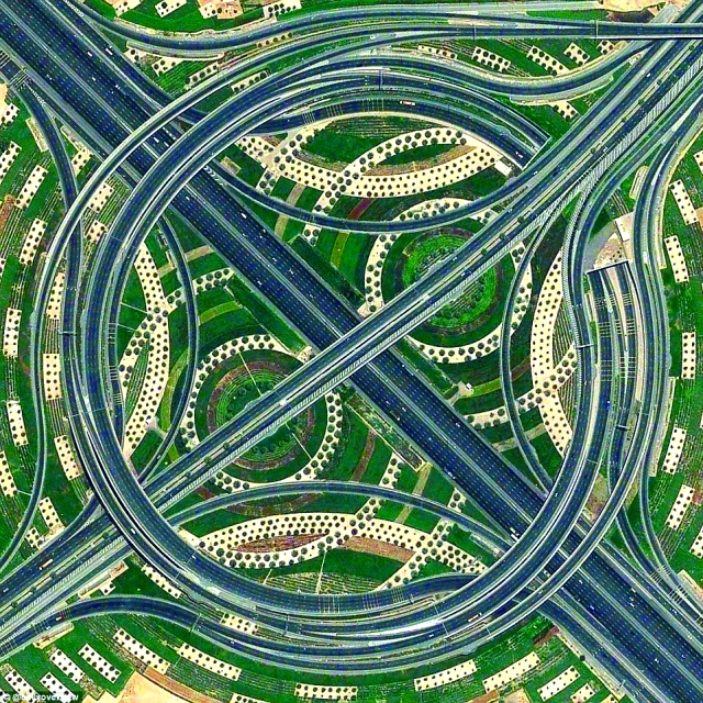 نشرت صحيفة «ديلي ميل» البريطانية، صوراً مذهلة من الفضاء لمعالم من أنحاء العالم، قالت إنها أكثر الصور إبهاراً في كل العصور. وضمت صورة من الفضاء لدوامة من تقاطعات الطرق بنيت سنة 2006، تربط ثلاثة طرق رئيسة بحديقة العجائب في دبي. وقالت الصحيفة إن المشروع المعروف باسم «ديلي أوفر فيو»، الذي صممه بنجامين غرانت من نيويورك، يدرج صوراً يومية من الأقمار الصناعية في انستغرام، تلتقط لأيقونات ومناظر مبهرة من أنحاء العالم. وأضافت الصحيفة أن غرانت وفريقه، وضعوا صوراً من غوغل إيرث.