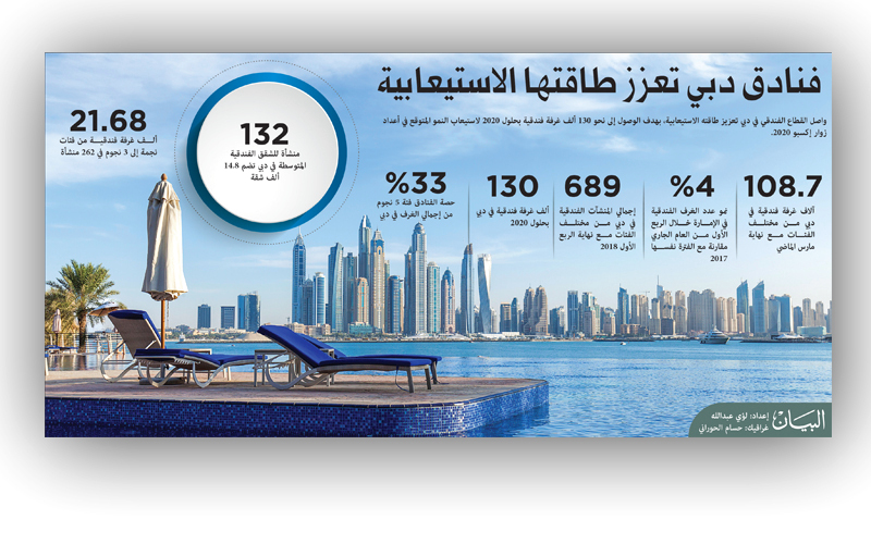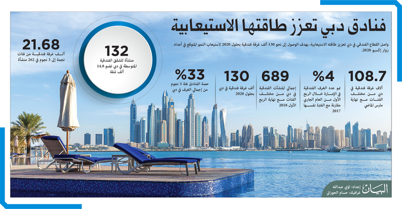 واصل القطاع الفندقي في دبي تعزيز طاقته الاستيعابية، بهدف الوصول إلى نحو 130 ألف غرفة فندقية بحلول 2020 لاستيعاب النمو المتوقع في أعداد زوار إكسبو 2020.
