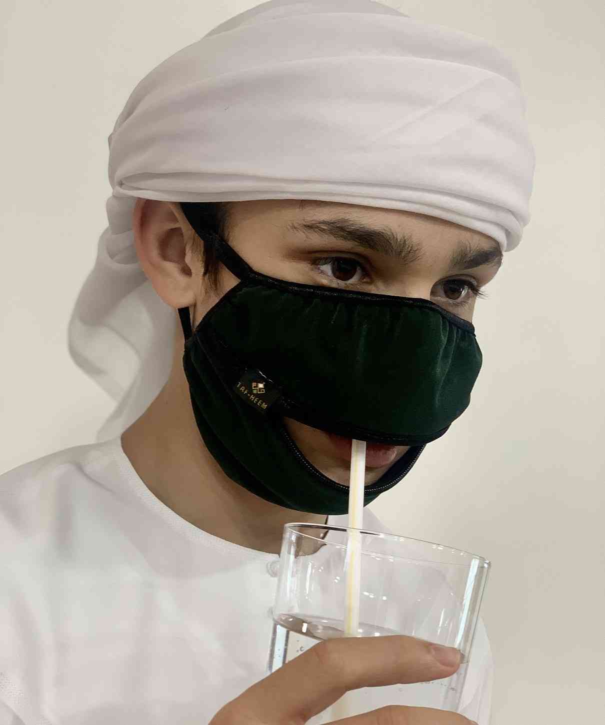 وتحتوي الكمامة على سحّاب لتسهيل الشراب دون الاضطرار لإزالتها، وبالتالي ضمان المحافظة على صحتهم.