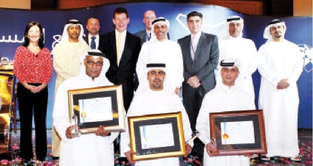 كرمت مؤسسة مطارات دبي، ثلاثة من موظفيها المتفوقين، خلال احتفال تكريمي خاص تقديراً لجهودهم. والفائزون هم سعود الحمودي رئيس قسم البنية التحتية لمدارج المطار وعارف العامري مدير عمليات الشحن في مركز الشحن في مطار دبي وخالد نور مدير عمليات المبنى.