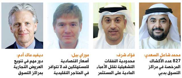 وتعد مراكز التسوق في دبي أكثر تطوراً منها في بقية أنحاء العالم، وفيها العديد من الأكشاك التي نجحت في استقطاب وإشراك المتسوقين في تجربة تسوق متميزة».