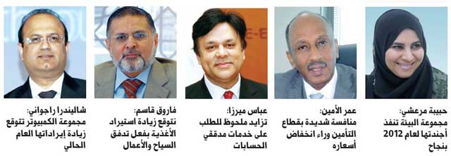 وكان الطلب على أجهزة الكمبيوتر، وأجهزة الكمبيوتر المحمولة وملحقات الكمبيوتر الأخرى قوية خلال الستة أشهر الأولى من هذا العام مع نمو مبيعات التجزئة في الإمارات وشهدنا زيادة ملحوظة في مبيعاتنا في الإمارات. نتوقع أن تكون المبيعات أيضا جيدة خلال الأشهر الستة المقبلة من هذا العام ونتوقع عائدات المبيعات الإجمالية أن تنمو بنسبة 15 ٪ مقارنة بعام 2011.