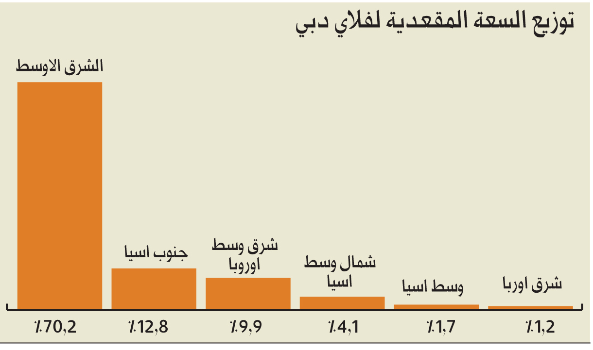 وتعد الدوحة أكبر وجهة للرحلات من دبي من حيث عدد المـــقاعد التي تزيد على 37 الف مقعد اسبوعيا باتجاه واحد كـــما ان خط دبي الدوحة هو أكبر خط بالنسبة للخطوط القطرية من حيث السعة المقعدية تليها فلاي دبي ثم الكويتية . وتستحوذ الخطوط القطرية على 33 % من السعة المقعدية على هذا الخط تليها الامارات بـ 32 % ثم فلاي دبي بـ 31 % . ويعد خط دبي الدوحة سابع أكبر خط عالمي من حيث السعة المقعدية .