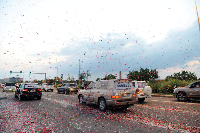 تتحول جزيرة ياس الواجهة الترفيهية لأبوظبي إلى لوحة بديعة من الألوان، حيث تتجمع الآلاف من المركبات المزدانة بألوان علم الإمارات العربية المتحدة الوطني الأخضر والأحمر والأبيض والأسود في 2 ديسمبر 2013 احتفالًا باليوم الوطني والقيام بمحاولة فريدة من نوعها لتسجيل رقم قياسي عالمي جديد.