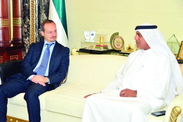 استقبل أحمد محبوب مصبح مدير جمارك دبي في مكتبه، جيوفاني فافيللي، قنصل عام إيطاليا في دبي، حيث بحث معه سبل تنمية العلاقات الاقتصادية والمبادلات التجارية بين دبي، وجمهورية إيطاليا، وترتيبات زيارة وفد رفيع المستوى من جمارك دبي إلى إيطاليا، خلال الفترة من 23 إلى 25 سبتمبر الحالي، يضم كلاً من سلطان أحمد بن سليم رئيس موانئ دبي، رئيس مؤسسة الموانئ والجمارك والمنطقة الحرة، ومدير جمارك دبي، التي تتناول العلاقات المشتركة في مجالات الموانئ والجمارك وسبل تعزيز الاستثمارات المتبادلة.