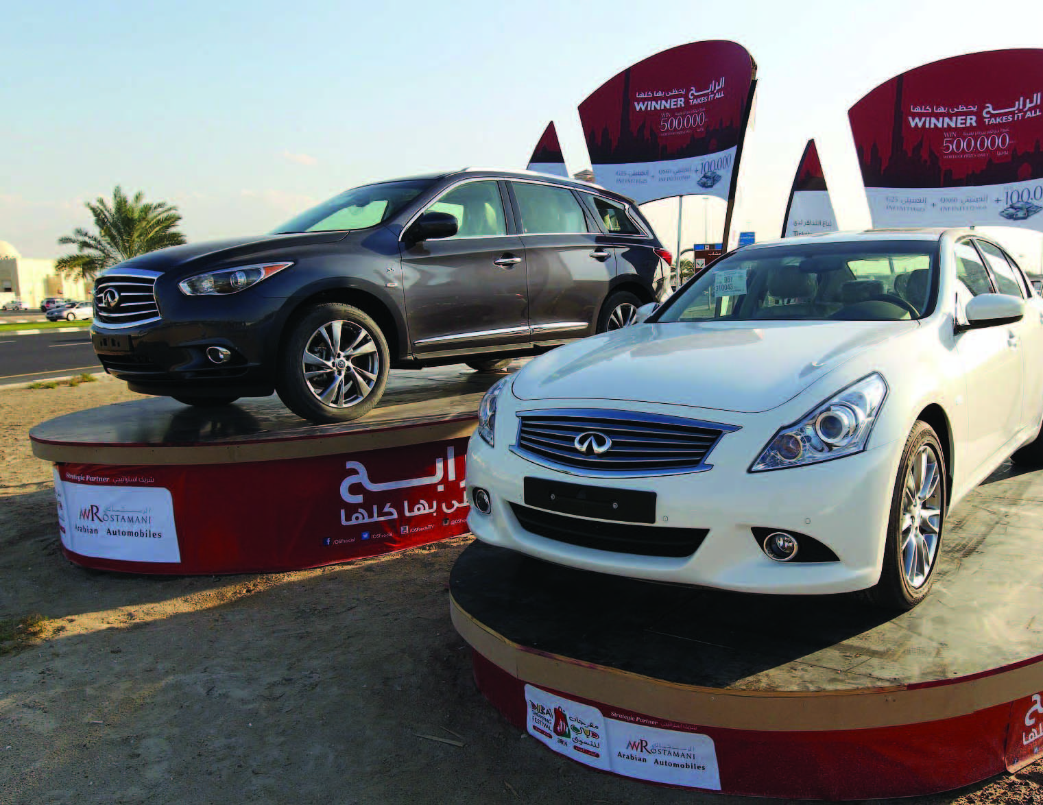 يستطيع الجمهور التأهل للدخول في السحب اليومي على سيارة نيسان خلال فترة المهرجان 1 يناير 1 فبراير من ضمن 10 موديلات وهي ميكرا، وصني، وسنترا، وتيدا، وألتيما، وإكس تريل، ومورانو، و370z، وباثفايندر، وأرمادا، بالإضافة إلى الجائزة الأسبوعية بمناسبة الدورة العشرين للمهرجان »نيسان باترول« عند الإنفاق بقيمة لا تقل عن 20 درهماً من محلات زووم أو برونتو، و30 درهماً على غسيل السيارات في إينوك أو أيبكو، أو 100 درهم على تغيير الزيت أو على أي خدمات أخرى من اوتوبرو.