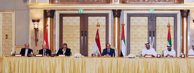 واستمع الرئيس المصري الى عدد من المستثمرين ورؤساء الشركات في دولة الامارات الذين تحدثوا عن تجاربهم للاستثمار في مصر وقدموا عددا من المقترحات لتطوير أعمالهم فيها.