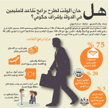 وأضاف ويم أن الخيار الأسهل، ربما هو النظر في إمكانية تعديل قانون نهاية الخدمة، ليكون أشبه ببرنامج للادخار. وفي هذه الحالة، يقوم صاحب العمل بتمويل صندوق استثماري، الذي يمكن أن يكون على هيئة منتج لتأمين الموظفين. وكما كان الأمر بالنسبة للتأمين الطبي الإجباري، يمكن للحكومة أن تقوم بتعديل قانون العمل، وإضافة تشريعات تلزم صاحب العمل بتحويل تعويض نهاية خدمة الموظفين بشكل دوري إلى طرف خارجي، وعدم ترك هذا المال كالتزام في الميزانية حتى ترك الموظف العمل.