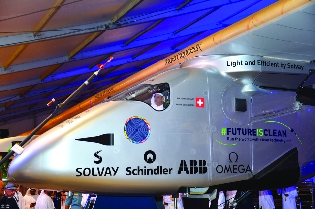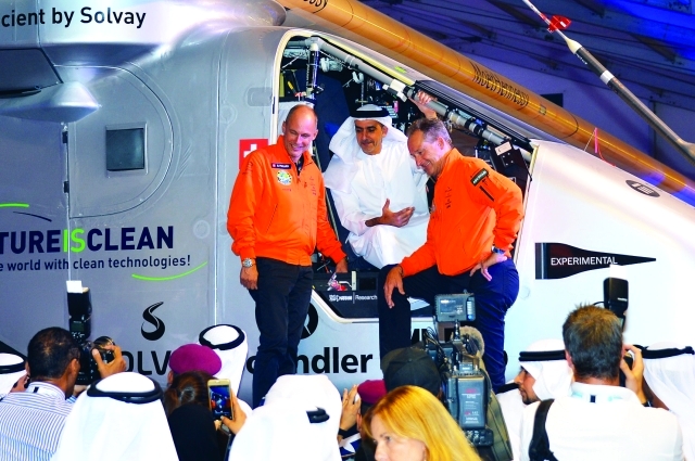 واطلع الفريق سمو الشيخ سيف بن زايد آل نهيان، نائب رئيس مجلس الوزراء وزير الداخلية، على طائرة «سولار إمبلس» التي وصلت فجر أمس إلى مطار البطين مختتمةً رحلة حول العالم بالاعتماد بشكل كامل على الطاقة الشمسية.