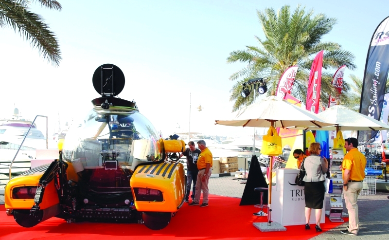 ولفتت غواصة تريتون بلونها الأصفر أنظار العديدين من زوار المعرض، وهى إحدى الآليات الاستكشافية التي تتيح لمستخدميها إمكانية الوصول إلى أماكن لم يتمكن أحد من بلوغها من قبل. ويمكن لغواصة تريتون 3300/3، الشبيهة بمركبة الفضاء الداخلية والبالغ سعرها 3.6 ملايين دولار أن تبحر حتى عمق 3300 قدم وعلى متنها 3 أشخاص.
