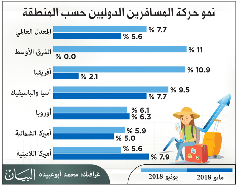 ارتفع الطلب العالمي على الرحلات الجوية في شهر يونيو الماضي بنسبة 7.7% بالمقارنة مع الفترة ذاتها من عام 2017. وسجلت جميع المناطق العالمية ارتفاعاً في معدل النمو، تصدرتها منطقتا الشرق الأوسط وأفريقيا. كما ازدادت السعة الإجمالية بنسبة 5.9% وعامل الحمولة بواقع 1.4 نقطة مئوية ليبلغ 81.9%. وفق أحدث تقارير الاتحاد الدولي للنقل الجوي «إياتا».