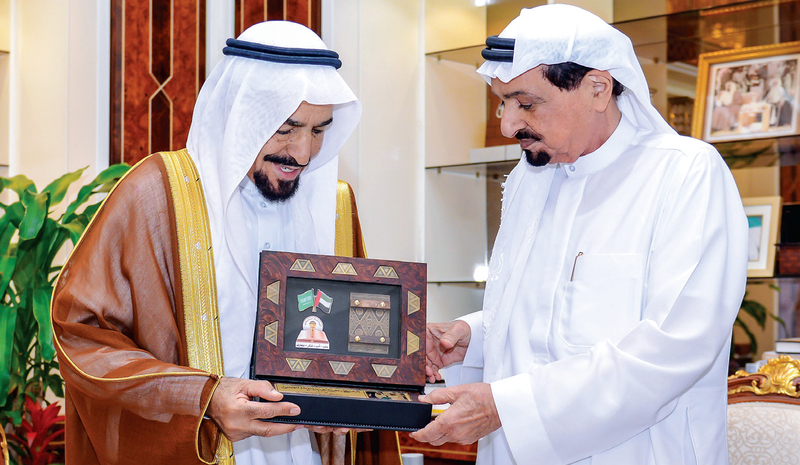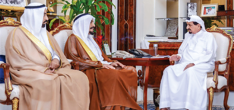 استقبل صاحب السمو الشيخ حميد بن راشد النعيمي عضو المجلس الأعلى حاكم عجمان - في مكتبه بالديوان أمس- وفداً سعودياً برئاسة الدكتور عبد الرحمن عبدالله عبد العزيز المشيقح رئيس مجلس إدارة مجموعة الوسائل الصناعية في القصيم وعضو مجلس الشورى السابق ضم رجال أعمال ومستثمرين رافقه الدكتور خليفة راشد الشعالي مدير الكلية الجامعية للأم والعلوم الأسرية.