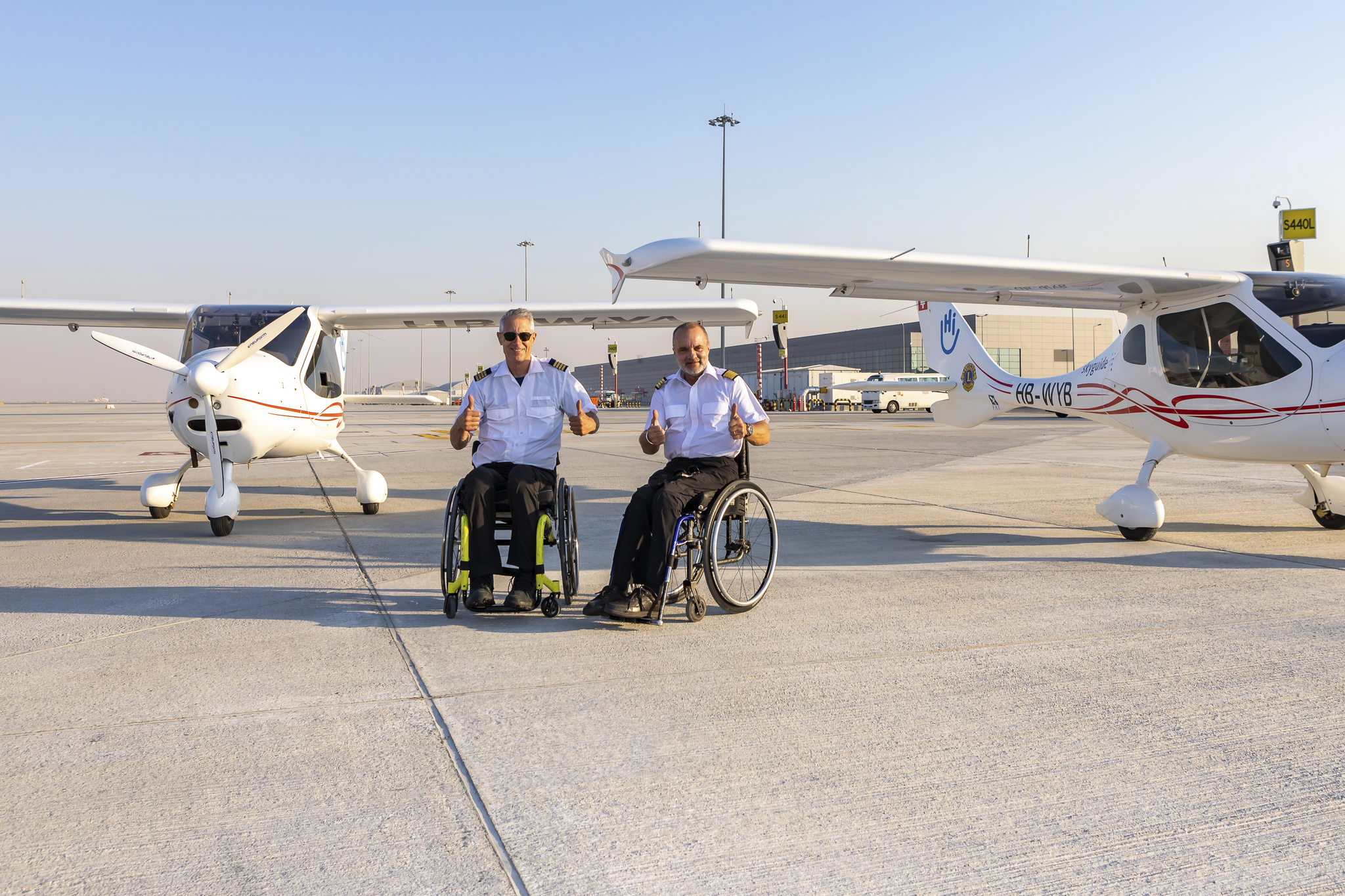 عبر مسؤولون من مؤسسة مطارات دبي، ومؤسسة اكزيكيوجت، ونادي الليونز الدولي عن ترحيبهم الحار من دبي بالملاحين من أصحاب الهمم اللذان يقومان بقيادة طائرتين صغيرتين في رحلة حول العالم، وذلك في مسعى لرفع نسبة الوعي حول ضرورة دمج الأشخاص من أصحاب الهمم.