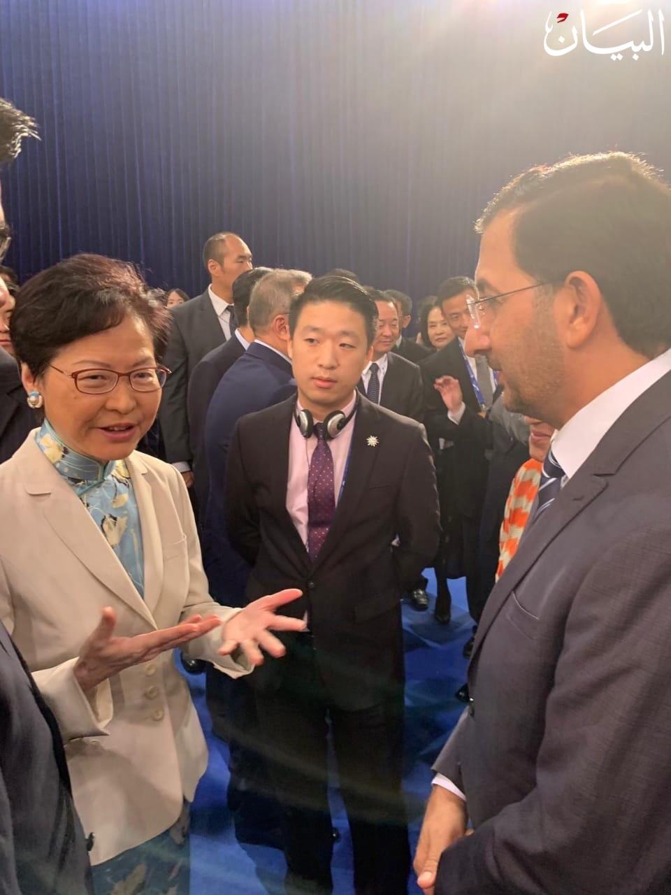 وكانت حاكم هونج كونج قد التقت عند دخولها مركز المؤتمرات والمعارض برئيس وفد دولة الامارات سعادة عبد الله آل صالح وكيل وزارة الاقتصاد لشؤون التجارة الخارجية واكدت سعادتها الكبيرة لمشاركة الإمارات في القمة مؤكدة على أن هونج كونج تعطي اهمية كبيرة لتطوير علاقاتها الاقتصادية والتجارية مع الإمارات.
