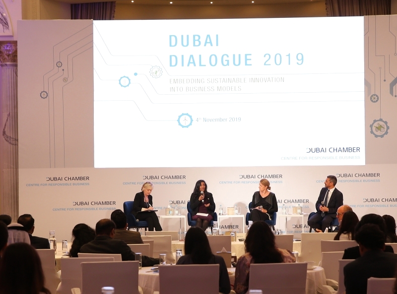 نظمت غرفة تجارة وصناعة دبي ممثلة بمركز أخلاقيات الأعمال التابع لها أمس في فندق حبتور بالاس دبي مؤتمر «حوار دبي 2019» حول كيفية دمج الابتكار المستدام في نماذج أعمال الشركات، وذلك بمشاركة شريحة واسعة من المعنيين والمهتمين بالمسؤولية الاجتماعية في الدولة.