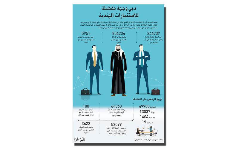 وتوضح البيانات أن دبي تعد على قائمة الوجهات المفضّلة ورجال الأعمال الهنود، لما تتمتع به الإمارة من موقع استراتيجي واقتصاد متنوع ومزايا استثمارية وفرص واعدة.