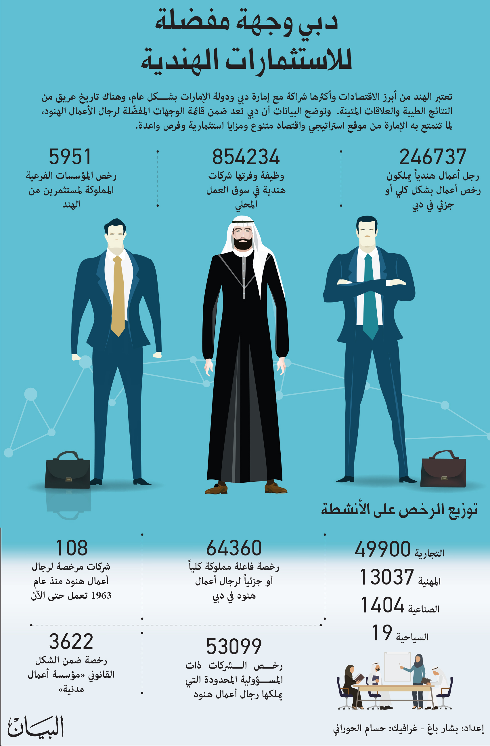 رجل أعمال هندياً يملكون رخص أعمال بشكل كلي أو جزئي في دبي
