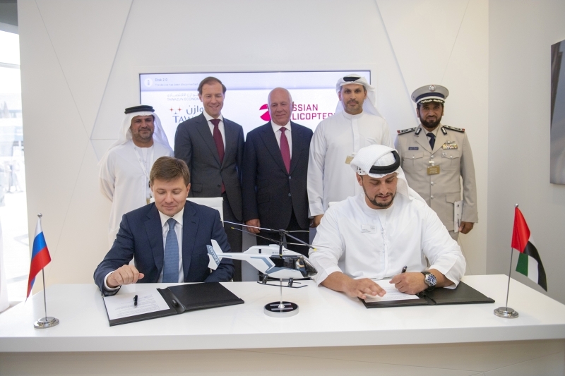 حضر التوقيع خلدون خليفة المبارك، رئيس جهاز الشؤون التنفيذية وعضو مجلس إدارة مجلس التوازن الاقتصادي، ومعالي اللواء الركن طيار فارس خلف المزروعي، القائد العام لشرطة أبوظبي، ودنيس مانتوروف، وزير الصناعة والتجارة الروسي، وطارق عبد الرحيم الحوسني، الرئيس التنفيذي لمجلس التوازن الاقتصادي، وأندريه بوجينسكي، المدير العام لشركة روسيا للهليكوبتر، وعبد الله ناصر الجعبري، الرئيس التنفيذي لصندوق توازن لتنمية القطاعات الاستراتيجية، وألكسندر أوخونكو، المدير العام لشركة «في آر تي».