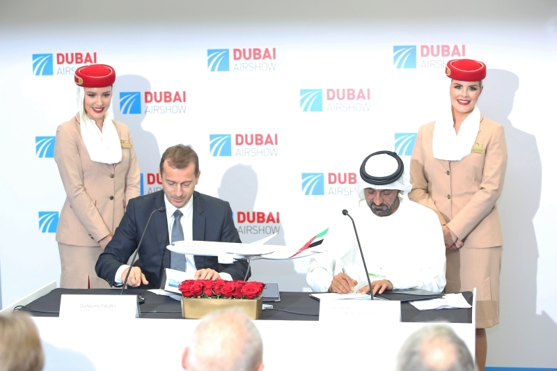 سجل معرض دبي للطيران في اليومين الأولين، صفقات قياسية معلنة، بلغ مجموعها 126.2 مليار درهم، أبرزها توقيع «طيران الإمارات»، طلبية مؤكدة لشراء 50 طائرة A350-900 XWB بقيمة 16 مليار دولار (58.7 مليار درهم)، وطلبية أخرى مؤكدة وقعتها «العربية للطيران» لشراء 120 طائرة من عائلة إيرباص 320، بقيمة 14 مليار دولار (51.5 مليار درهم)، وطلبية ثالثة وقعتها شركة «صن إكسبرس» التركية، لشراء 10 طائرات بوينغ ماكس 8، بقيمة 1.2 مليار دولار (4.4 مليارات درهم).