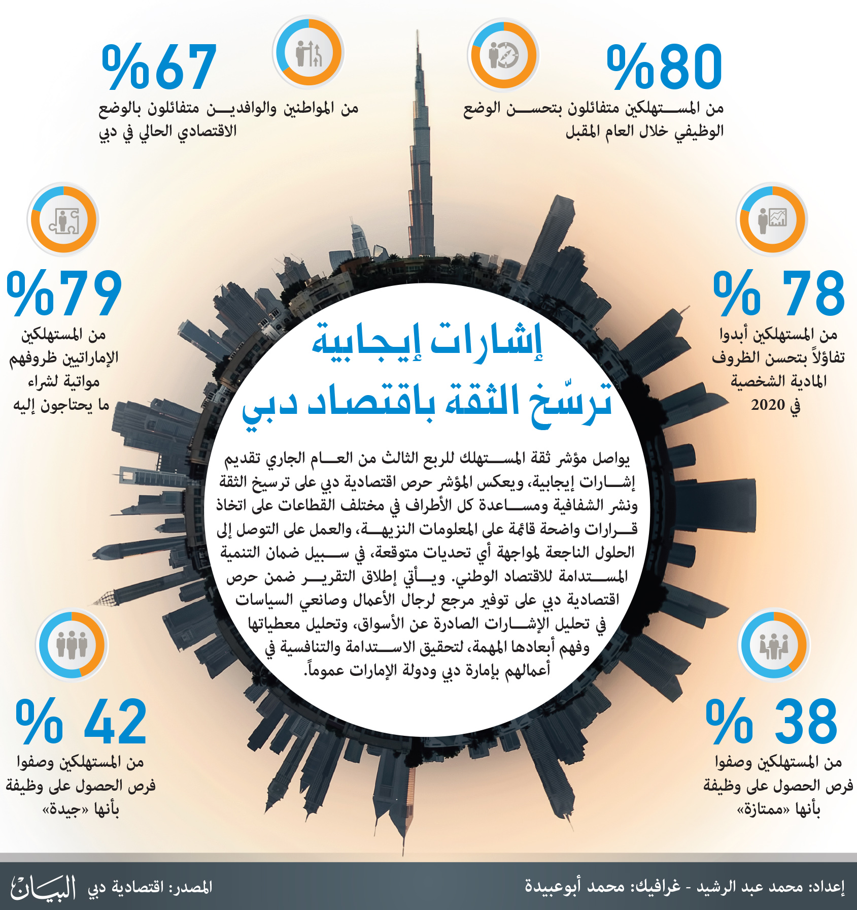 وتعتمد اقتصادية دبي في هذه الدراسة على مؤشر ثقة المستهلك الذي يعطي إشارة فردية لشعور المستهلك تجاه الوضع الاقتصادي الحالي في الإمارة، إضافة إلى النوايا والتوقعات للمستقبل، والقدرة على تتبع ثقة العميل على مدار مدة زمنية محددة، ويأتي إطلاق التقرير ضمن حرص اقتصادية دبي على توفير مرجع لرجال الأعمال وصانعي السياسات في تحليل الإشارات الصادرة عن الأسواق، وتحليل معطياتها وفهم أبعادها المهمة، لتحقيق الاستدامة والتنافسية في أعمالهم بإمارة دبي ودولة الإمارات عموماً.