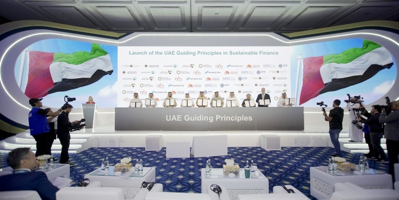 وحضر حفل إطلاق المبادئ سيف هادف الشامسي، نائب محافظ مصرف الامارات العربية المتحدة المركزي. وصرح : "يسعدنا أن نشارك في دعم التمويل المستدام والعمل مع أعضاء مجموعة العمل المعنية بالتمويل المستدام لتعزيز مساهمة دولة الامارات في جهود الاستدامة.