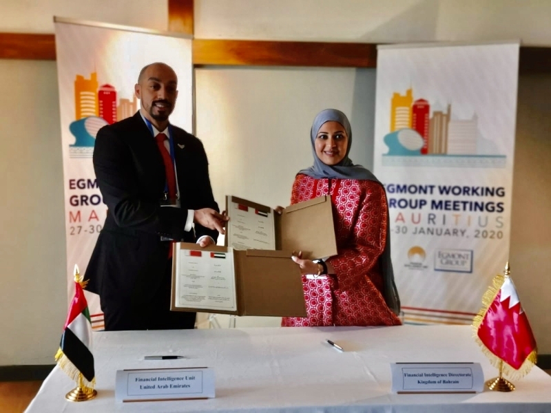 أعلنت وحدة المعلومات المالية في الإمارات توقيع مذكرتي تفاهم مع إدارة التحريات المالية في مملكة البحرين ومركز المعلومات المالية في جمهورية ناميبيا. جاء ذلك على هامش اجتماعات مجموعة إيجمونت لوحدات المعلومات المالية في مدينة بالاكلافا بموريشيوس.